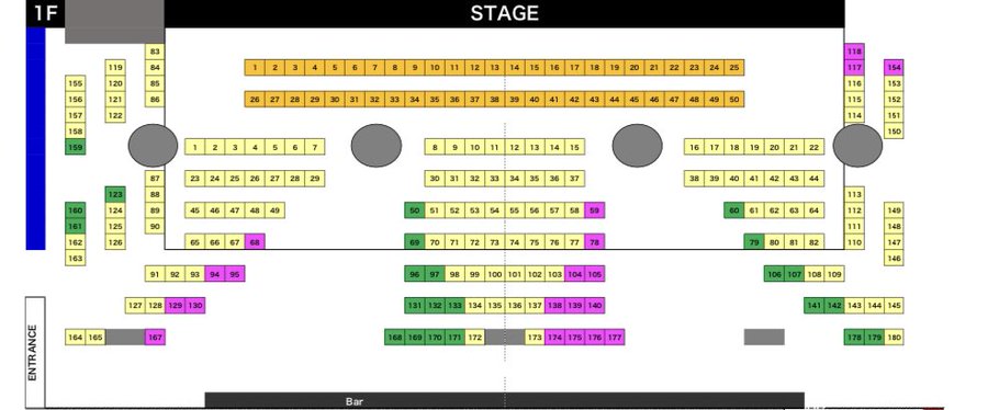 プレミアム席 ¥12,000円 当日払い 普通席 ¥5000円 当日払い ※緑🟩席、紫🟪席は、見切れ席 3,000円 になります。 【ご予約】 2020年12月8日23時 ~ 12月22日15時迄 購入はこちら https://t.livepocket.jp/e/qud5x |